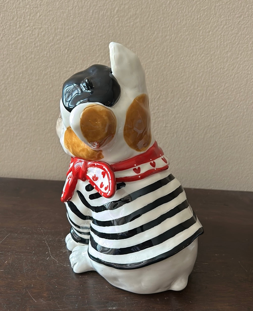 The Blue Sky Clayworks Valentine's Day FRENCH BULLDOG "KISS Me I'm French" Figurine is a medium-sized ceramic figurine of a French Bulldog. The figurine features a glossy finish and a Valentine's Day theme.