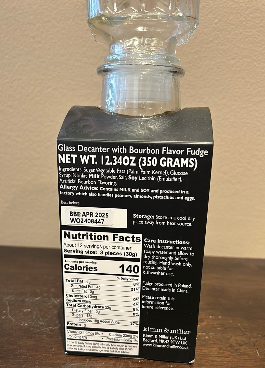 Indulge in the rich and creamy taste of Kimm & Miller's Bourbon Flavor Fudge, now available in a stylish glass decanter for a limited time. This exquisite fudge is perfect for anyone who loves a touch of luxury in their life. Made with the finest ingredients, this fudge is sure to impress your taste buds and make a great gift for your loved ones. With an expiration date of Apr 25, you can be sure to enjoy this delicious treat before it's too late.