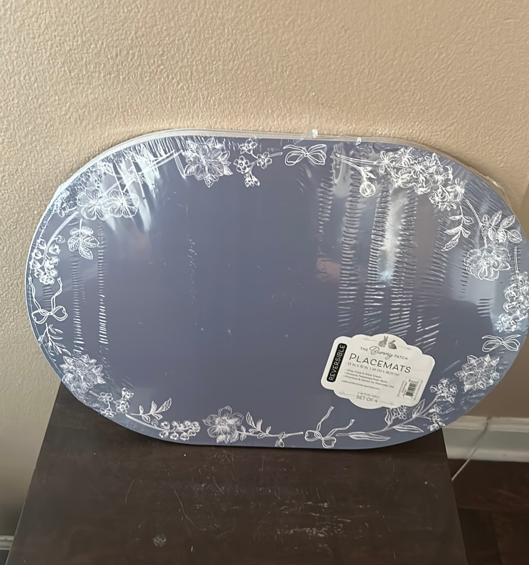 New Reversible Cork Placemats Easter Spring Bunny Rabbits Gray Set Of 4