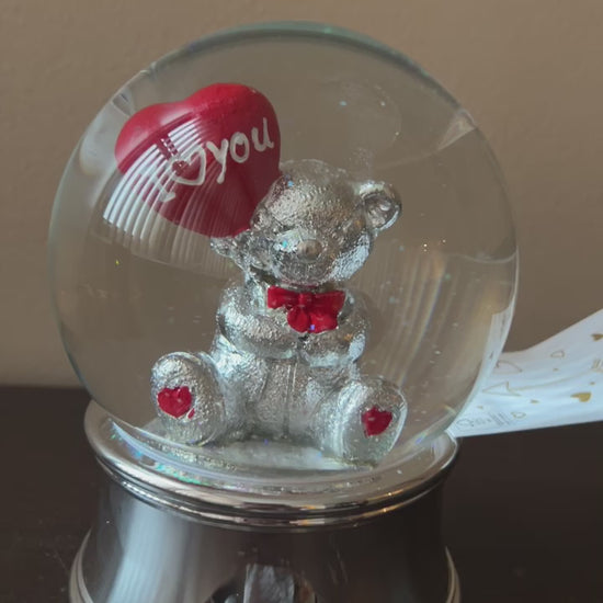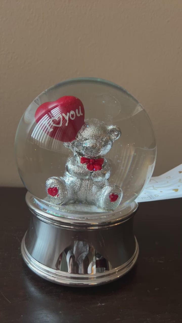 New Valentines Day Snowglobe Musical Proposal Teddy Bear Wth Red Heart Balloon