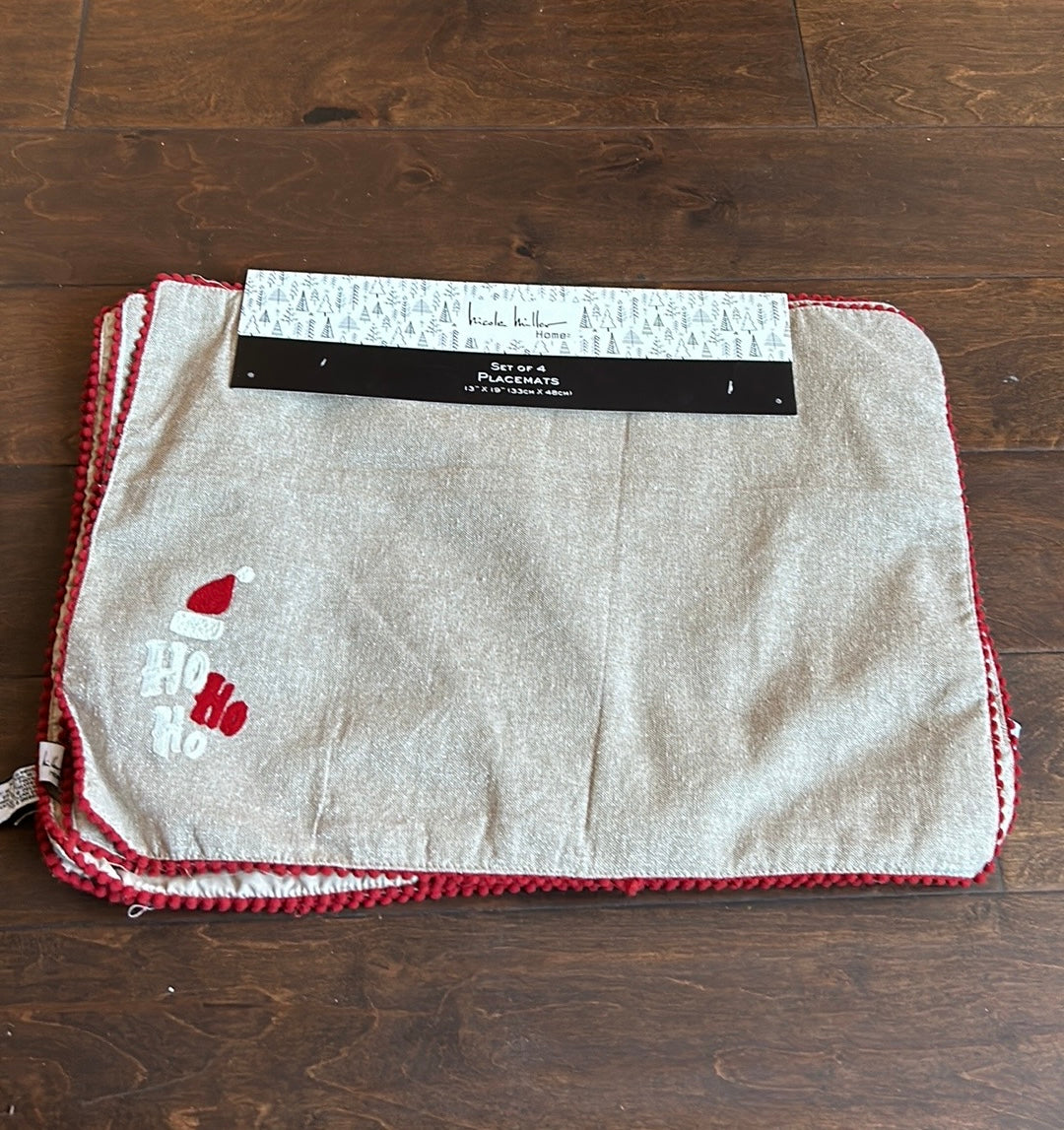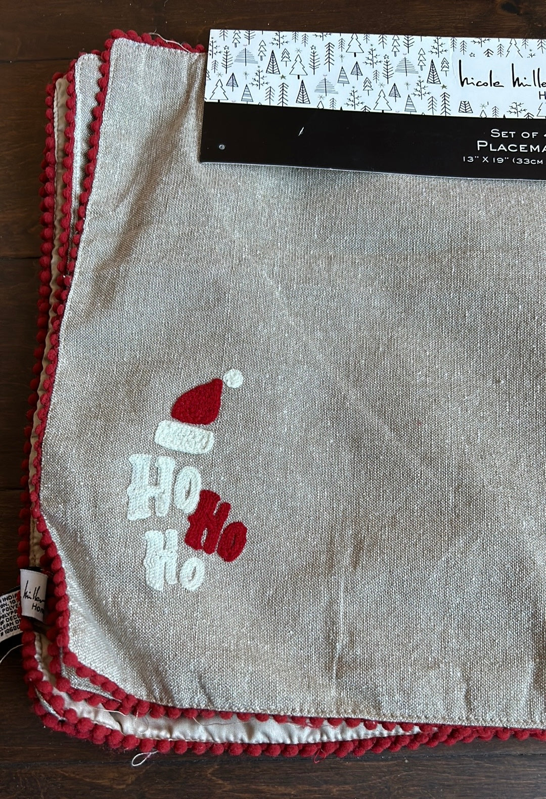 Nicole Miller Placemats 4 Gold Metallic Ho Ho Ho Embroidered Christmas Shimmer