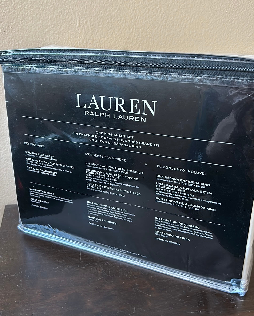 Ralph Lauren Christmas KING Sheet Set Holiday Holly Mistletoe 100% Cotton New
