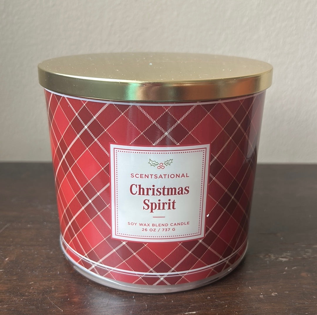 Enjoy the festive season with the Scentsational Christmas Spirit Candle in a large red glass jar with printed tartan plaid jar . This jar/container candle is made of soy wax and has multiple wicks for an even burn. The Christmas Spirit scent is perfect for any room and the red jar adds a touch of holiday cheer.