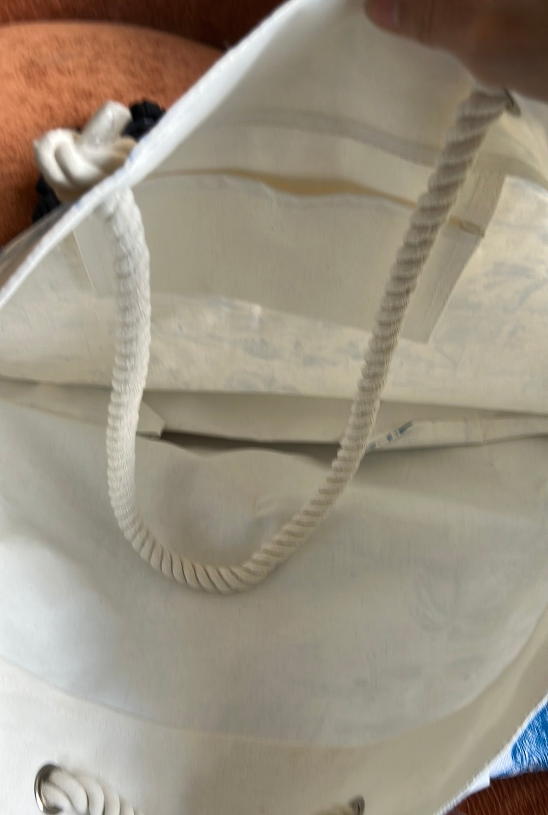 Sigrid Olsen Beach bag NWT Canvas New Blue White Palm Trees Beach Scene Boats
