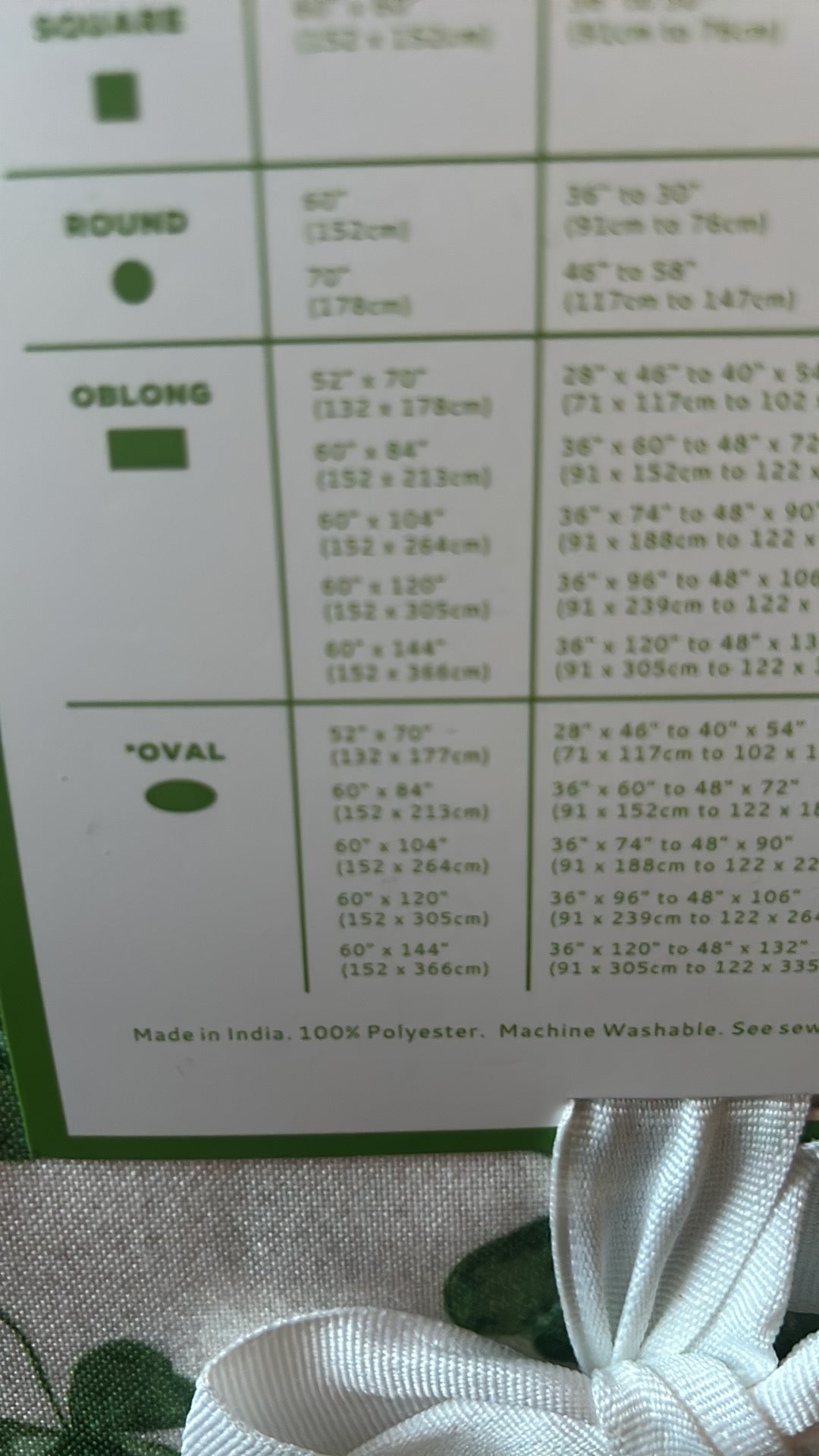 This is a Storehouse St Patrick's Day tablecloth featuring a green clover and ladybug pattern. It is oblong in shape, measuring 60 inches by 84 inches, and is made of 100% polyester material. The tablecloth is multicolored and perfect for adding a festive touch to your St Patrick's Day celebrations.