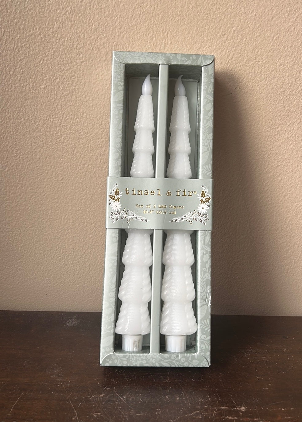 Tinsel & Fir Flameless Taper Candles 2 Pcs LED Christmas Tree 10.8” White
