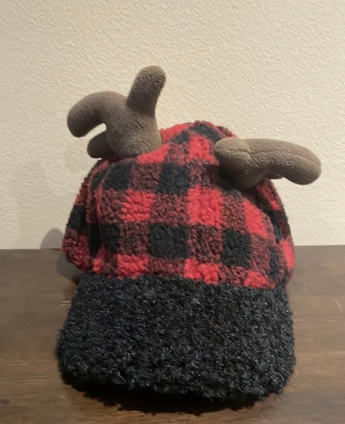 Holiday Time Christmas Plaid Antler hat Cap Reindeer antlers